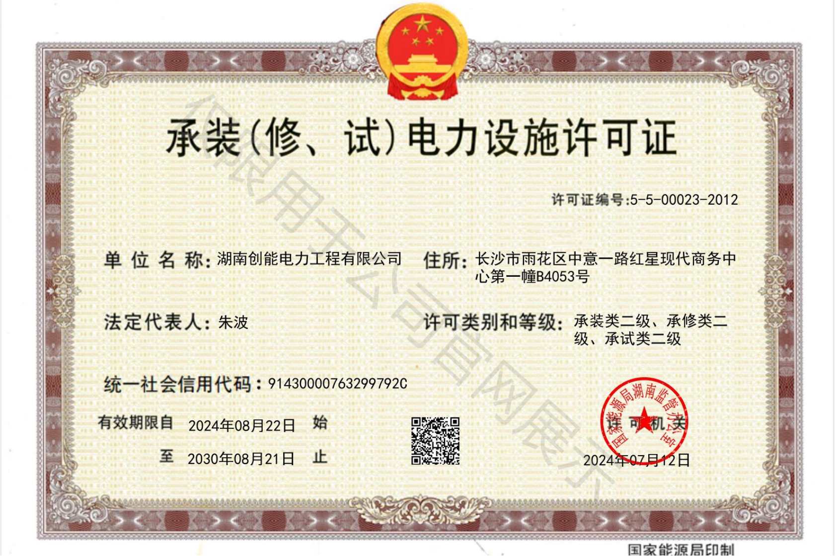 施工總承包電力工程貳級、施工總承包機電工程貳級、專業承包輸變電工程貳級